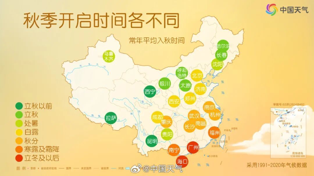 广东的秋天什么时候到?中国天气网统计了1991年至2020年省会级城市的入秋日期发现,9月至10月是全国入秋最集中的时间,广州,作为仅次于海口的全国最晚入秋的省会城市之一,平均入秋时间为11月9日,基本要在立冬之后才会入秋,持续60-80天。