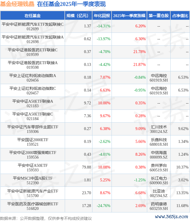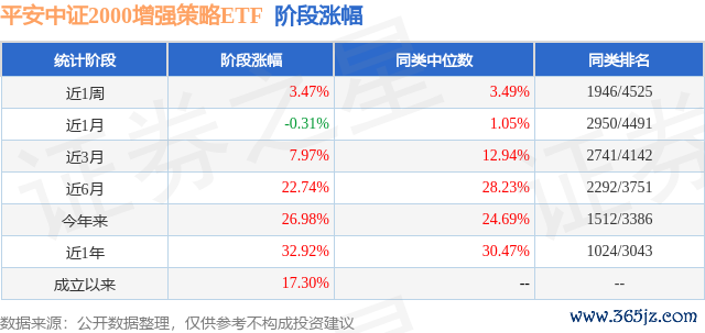 本站消息,日前平安中证2000增强策略ETF基金公布一季报涨8,2025年一季度最新规模0.43亿元,季度净值涨幅为8.26%。